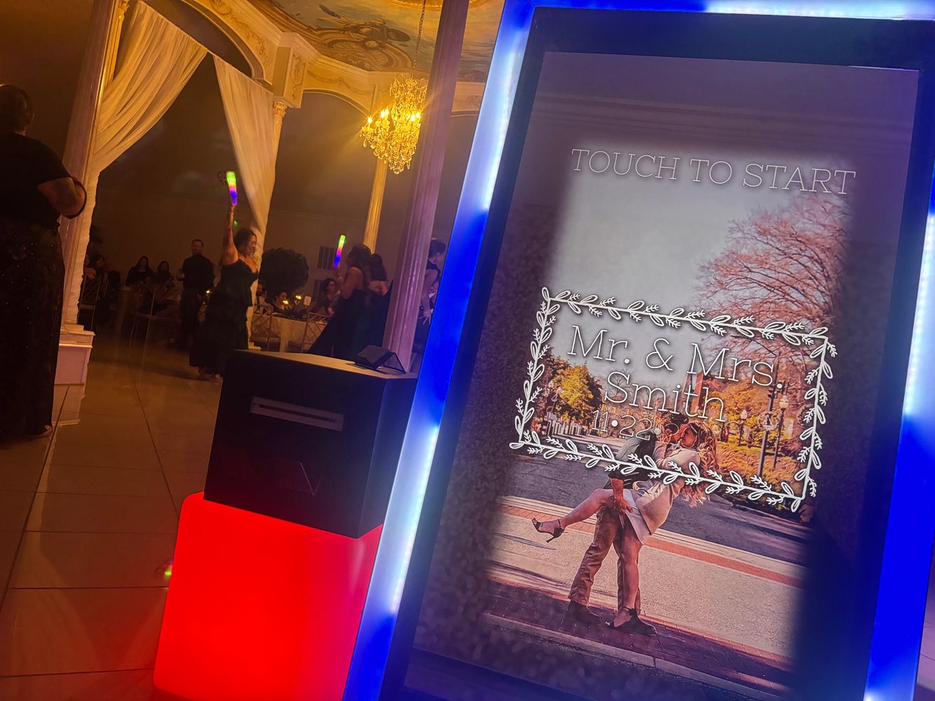 We offer a variety of customization's for our 65" Coastal Event Reflections photo booth rental including: